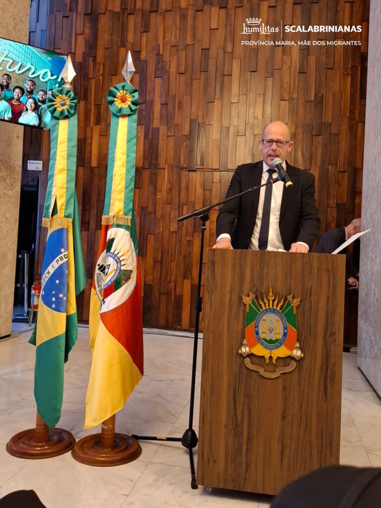 O deputado Joel Wilhelm destacou a atuação das Scalabrinianas no Rio Grande do Sul, através dos hospitais, escolas e obras sociopastorais presentes em diversas cidades gaúchas. “Que a sua missão continue sendo luz e esperança para os migrantes, refugiados e todos aqueles que buscam acolhida em terras gaúchas e brasileiras”, disse.