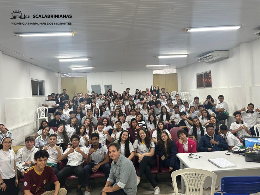 Na última quinta-feira, 18 de setembro, a Irmã Ramona Vasquez, membro da Coordenação da Pastoral dos Migrantes, e o jovem Marco Perez, fotógrafo da Pastoral, estiveram no EEM Dr. Cesár Calls, colégio de Ensino Médio na cidade de Fortaleza/CE, conversando com os jovens sobre as estatísticas, dificuldades e desafios da migração na juventude. A iniciativa reforça a importância de dar visibilidade a essas realidades, promovendo inclusão, respeito e direitos para todos. Estiveram presentes nessa conversa cerca de 100 jovens estudantes dos três anos do Ensino Médio.