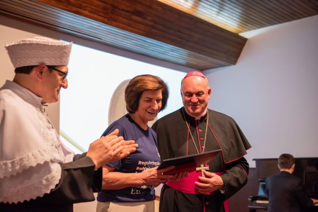 Na noite de sexta-feira, 5, o Centro de Atendimento ao Migrante (CAM) recebeu a Medalha Prefeito Hermes João Webber, um reconhecimento que reforça a caminhada coletiva de todas as pessoas que acreditam em um mundo sem fronteiras. A diretora do CAM, Ir. Celsa Zucco, recebeu a distinção em nome de toda a rede que sustenta diariamente o compromisso com a dignidade humana, a inclusão e o direito de migrar.