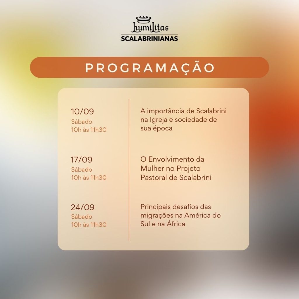 No último domingo de setembro, a Igreja celebra o Dia Mundial dos Migrantes e Refugiados. Esse ano, a mensagem do papa reflete sobre a construção de um futuro com os migrantes e refugiados. Desde novembro do ano passado estamos celebrando o ano Scalabriniano por ocasião dos 25 anos de beatificação de Scalabrini. E durante esse ano celebrativo, o papa Francisco convocou um consistório para a canonização de São João Batista Scalabrini. Nesse contexto, as Irmãs Scalabrinianas da Província Maria, Mãe dos Migrantes (América do Sul e África) promovem um ciclo de palestras visando celebrar o ano Scalabriniano e refletir sobre o anúncio da canonização de João Batista Scalabrini as vésperas do Dia Mundial dos Migrantes e Refugiados.