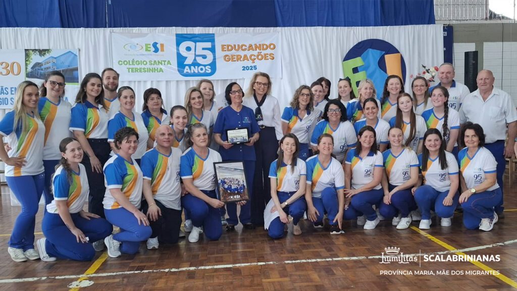 A missa foi iniciada com a entrada dos símbolos que representam a história do colégio: o número 130 representando os 130 anos da Congregação, celebrados em 2025, imagens de São Scalabrini, Madre Assunta e Pe. Marchetti, as bandeiras dos 27 países onde as Scalabrinianas estão presentes, o número 95, a Bandeira do Colégio, Pe. Hermínio Catelli, Imagem de Santa Teresinha e alunos com alunos com rosas.