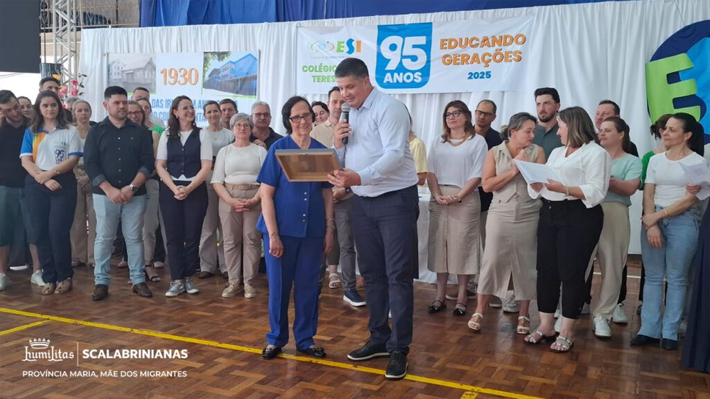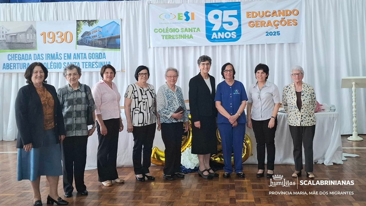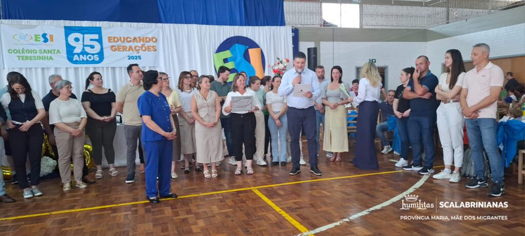 O comentário inicial destacou a gratidão pela caminhada de 95 anos do ESI Colégio Santa Teresinha, fundado em 1930 após muitos pedidos da comunidade de Anta Gorda e do Pe. Hermínio Catelli, que foram atendidos por Madre Assunta, à época Superiora Geral das Irmãs Scalabrinianas.