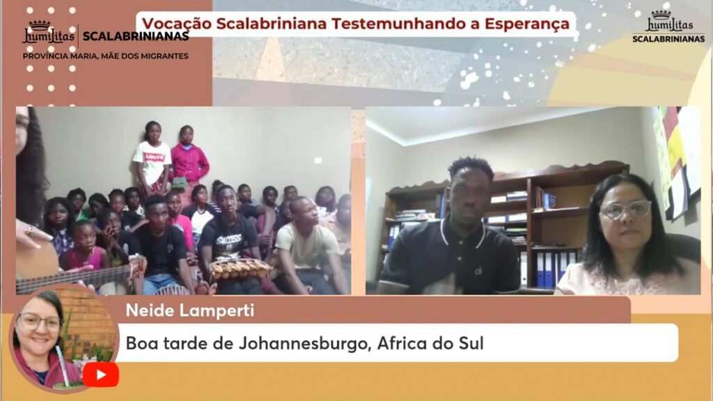 Em sintonia com o mês vocacional e os 130 anos de fundação da Congregação das Irmãs Scalabrinianas, aconteceu no domingo, 21, a live “Vocação Scalabriniana: Testemunhando a Esperança”. O encontro virtual foi um momento de fé, alegria e inspiração, reunindo jovens e religiosas em partilha vocacional. A live contou com momentos de oração e música com os jovens do Centro João Batista Scalabrini, de Ressano Garcia, Moçambique.