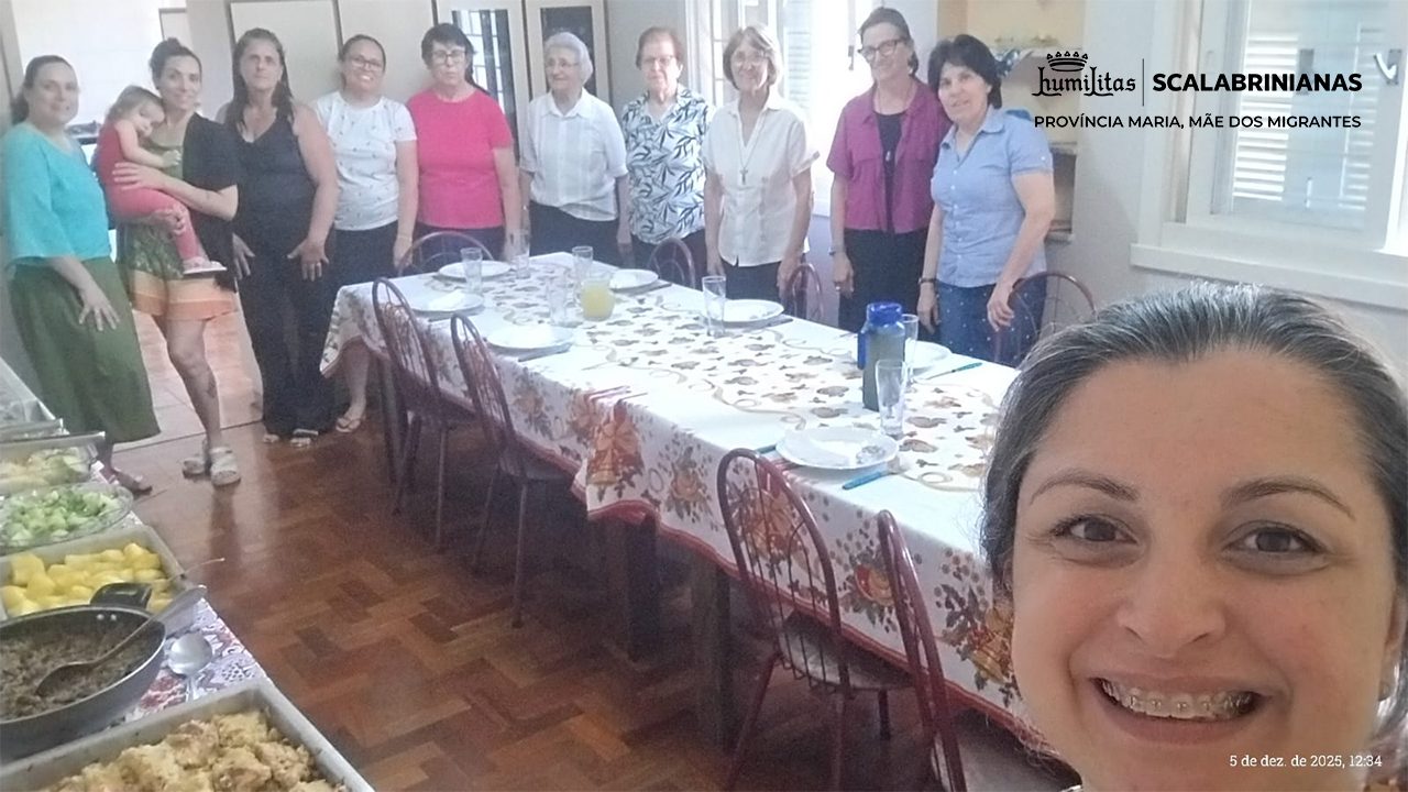 A ASEBESCA (Associação Educacional e Beneficente São Carlos) realizou, no dia 5 de dezembro, um encontro de formação e integração que reuniu duas das suas unidades: o ACOMIGRA (Serviço de Acolhida e Orientação ao Migrante), situado na Rodoviária de Porto Alegre/RS, e o Centro Socioeducacional Assunta Marchetti, de Canoas/RS, ocorrido na casa das Irmãs em Canoas.