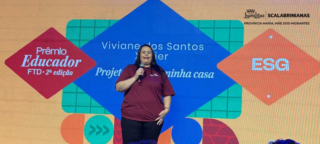 A professora Viviane Xavier, que atua na Rede ESI (Educação Scalabriniana Integrada) na Escola São Carlos Borromeo, em Curitiba/PR, foi a vencedora da categoria ESG na segunda edição do Prêmio Educador, reconhecimento que valoriza práticas pedagógicas inovadoras e comprometidas com a formação integral dos estudantes e com o desenvolvimento sustentável.