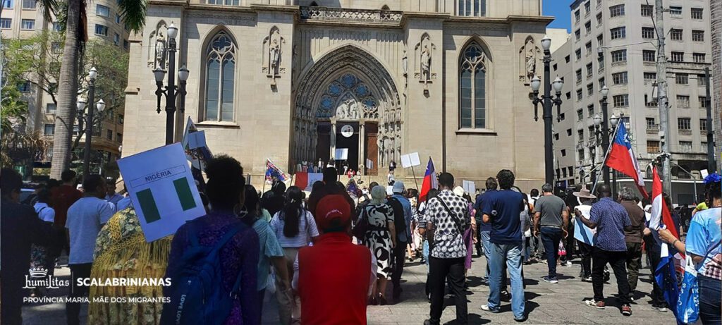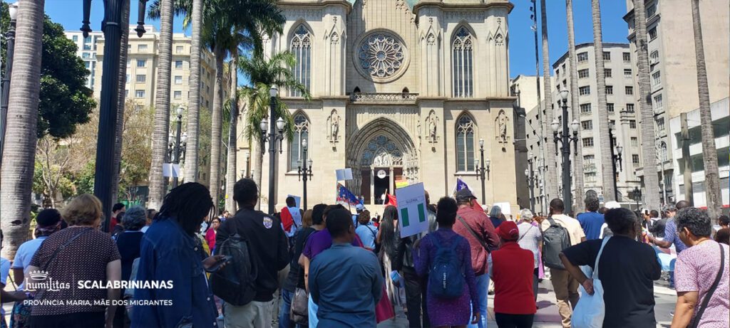 Durante a concentração no Pátio do Colégio, de onde saiu a caminhada, foram saudados os peregrinos da esperança da América do Sul, América Central, continente africano e do continente asiático, bem como as instituições e organizações que acolhem e acompanham os migrantes em São Paulo.