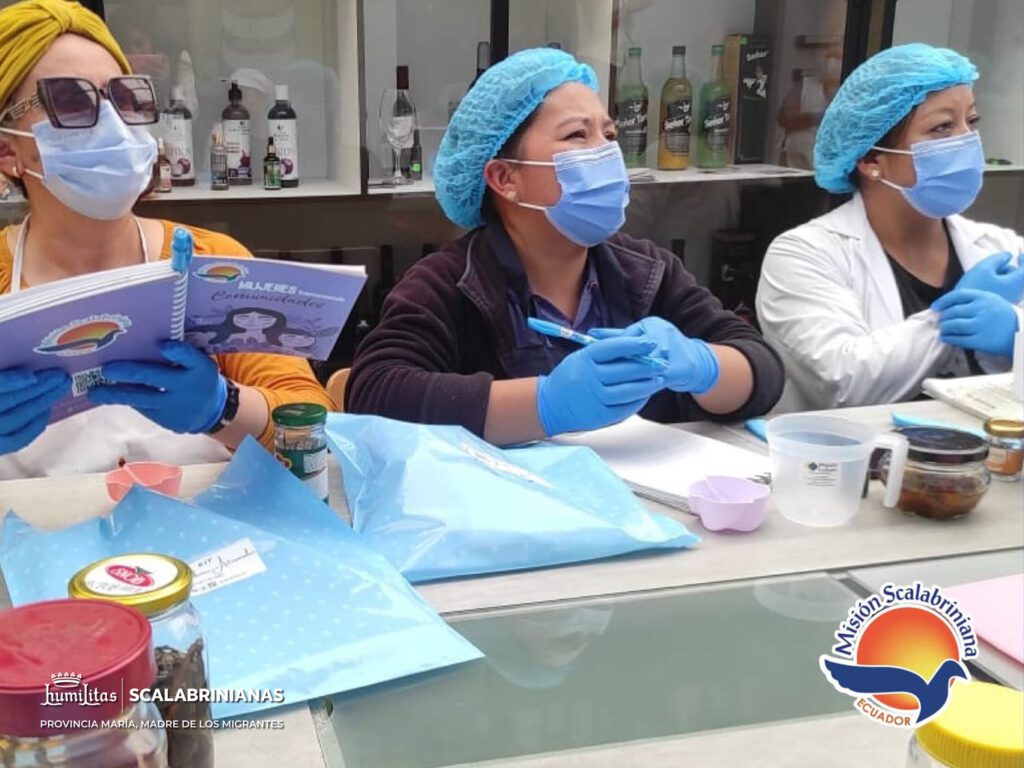Después de recibir la formación teórica, las participantes del grupo Mujeres Transformando Comunidades, de la Misión Scalabriniana Ecuador, pusieron manos a la obra en la capacitación práctica de elaboración de jabones artesanales en la ciudad de Tulcán.