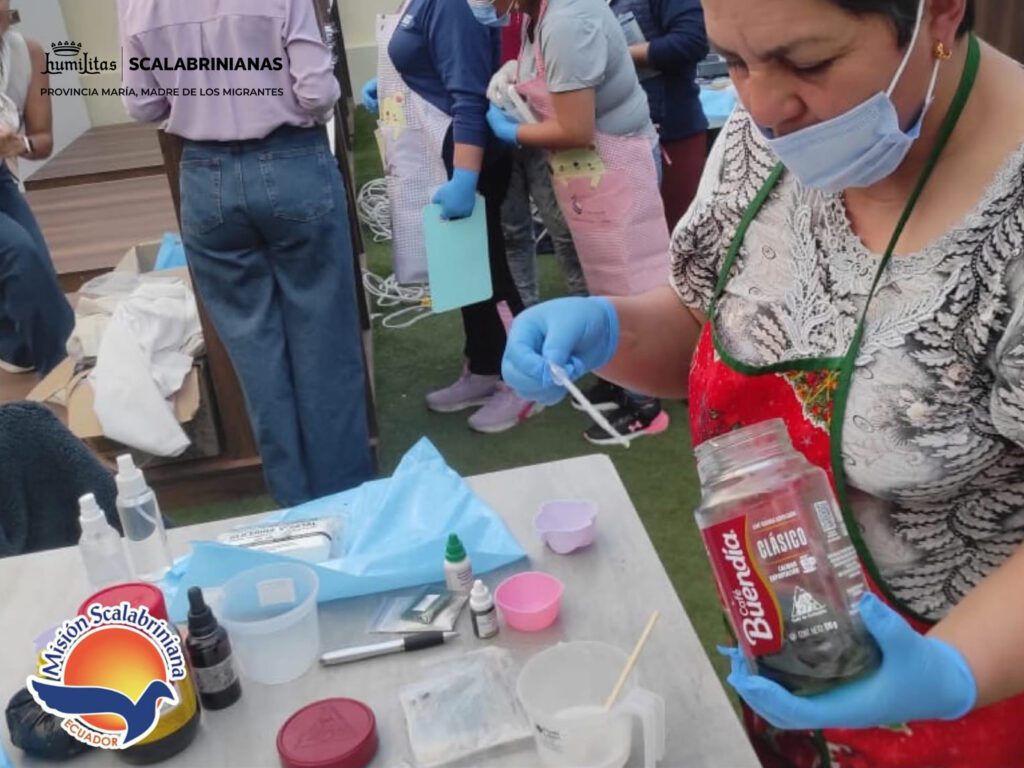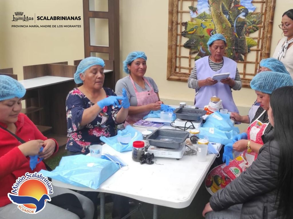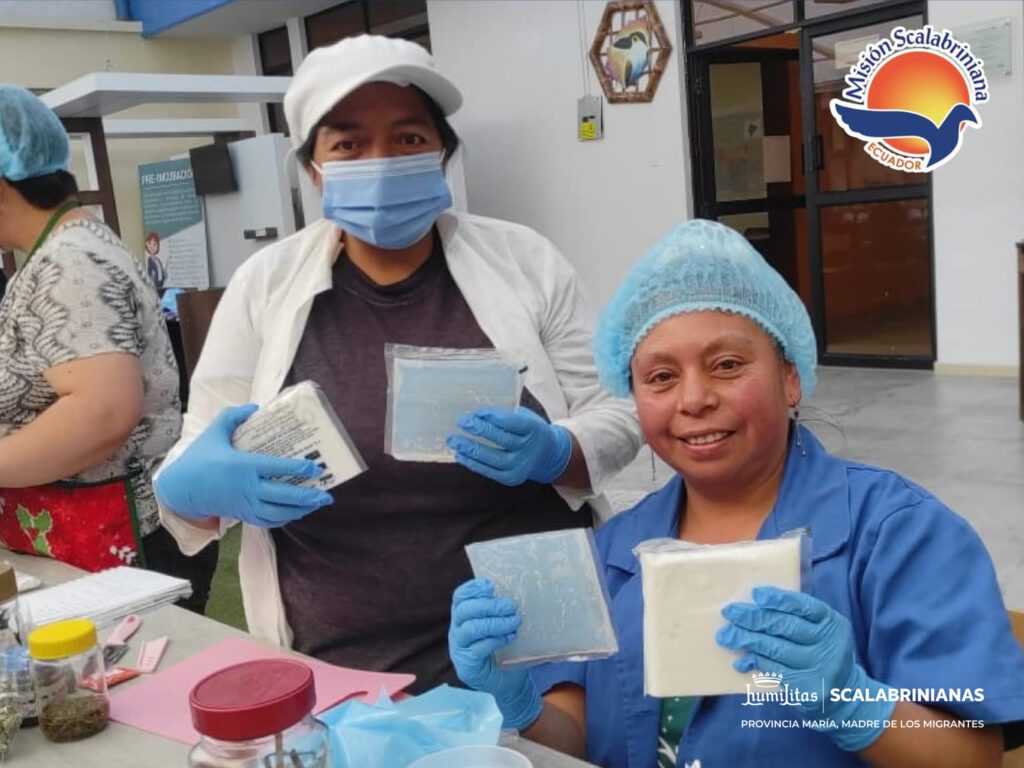 Después de recibir la formación teórica, las participantes del grupo Mujeres Transformando Comunidades, de la Misión Scalabriniana Ecuador, pusieron manos a la obra en la capacitación práctica de elaboración de jabones artesanales en la ciudad de Tulcán.